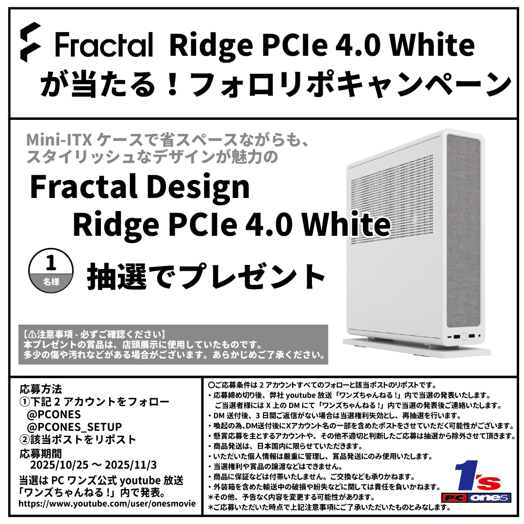 「Fractal Design Ridge PCIe 4.0 White (FD-C-RID1N-12)」を抽選で1名様にプレゼント!