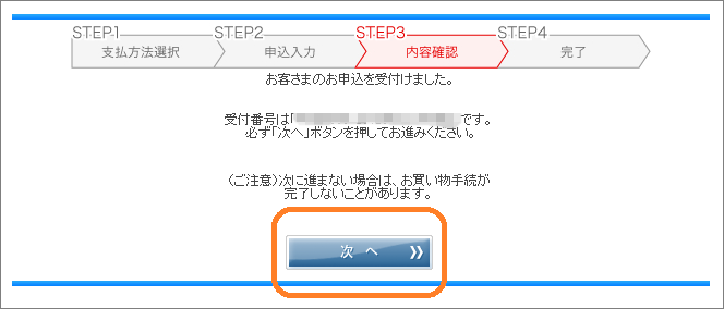 注:「次へ」をクリックされなかった場合,注文が確定しませんのでご注意ください.