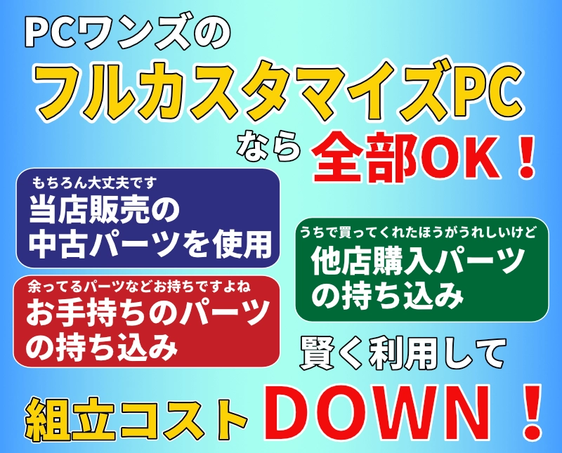 PCワンズでは,全ての自作パーツからお客様のオリジナルパソコンを製作致します.