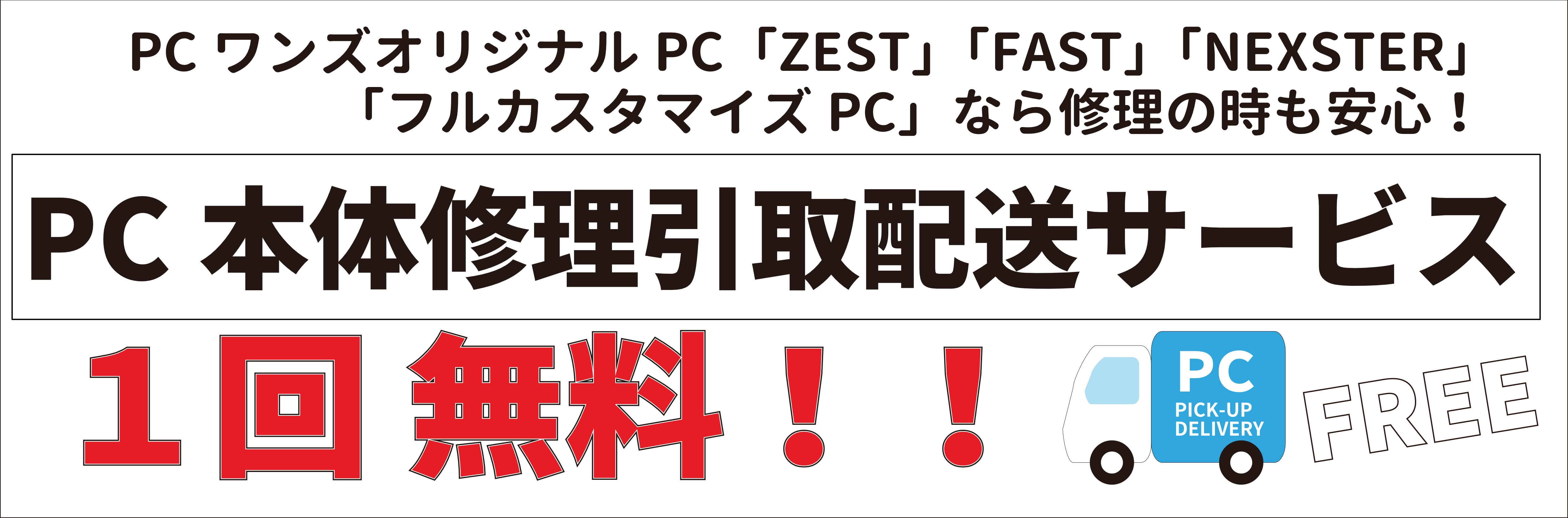 PCワンズでは,対象となる構成の場合,修理に伴う輸送コストも当店にてご負担致します.