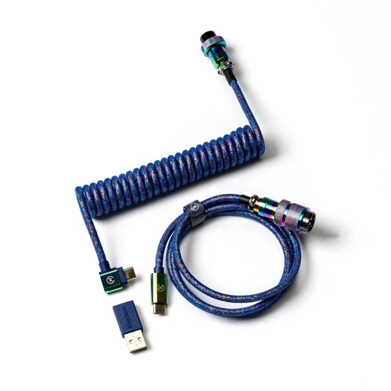 Keychron プレミアム・コイル式アビエイターUSBケーブル / L時(カラー:レインボーメッキ・ブルー) Cab-8