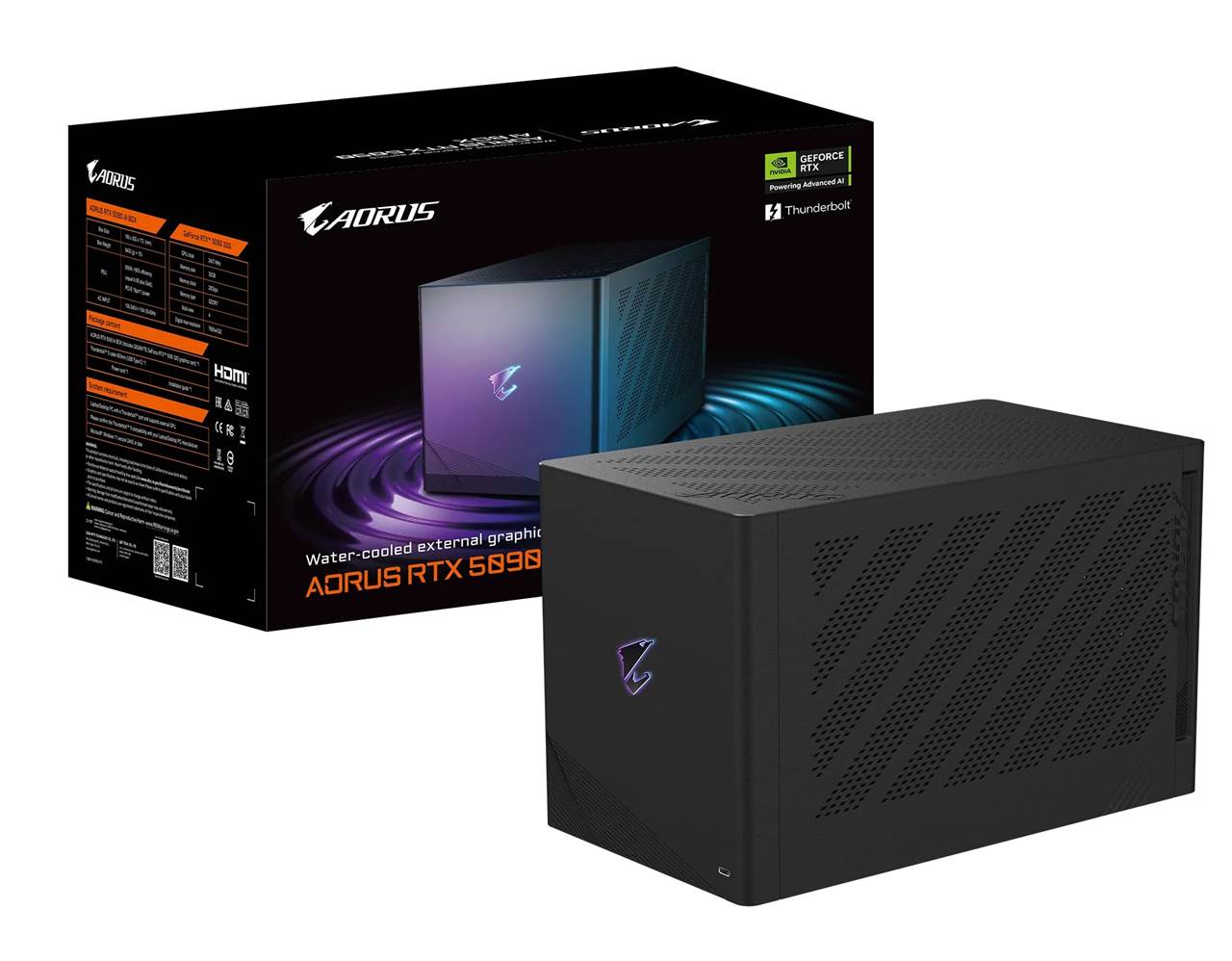 保証期間2年、 Thunderbolt 5接続(USB Type-C)、GeForce RTX 5090、(Boost 2407 MHz CUDAコア21760)、32GB、(GDDR7、28Gbps、512bit)、HDMI x1、DisplayPort x3、