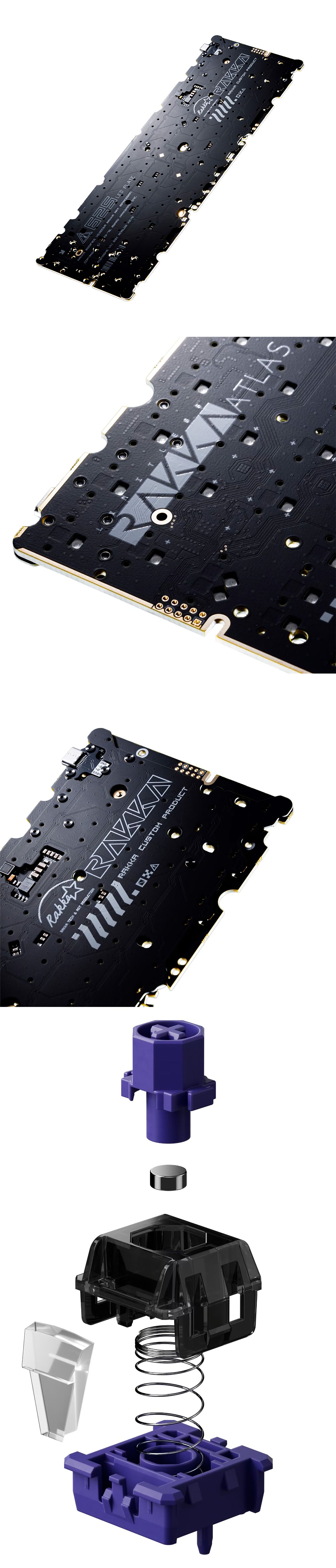 ※異なるレイアウト(6.25U スペースバー、7U スペースバー、2.25インチ x 1.25インチ x 2.75インチの分割スペース、3インチ x 1.3インチの分割スペース)に対応するため、プレートスタビライザー取り付けプレートとLEDバックプレートPCBは4つのバージョンから選択できます。どのバージョンが含まれるかは、ご購入いただいたバージョンによって異なります