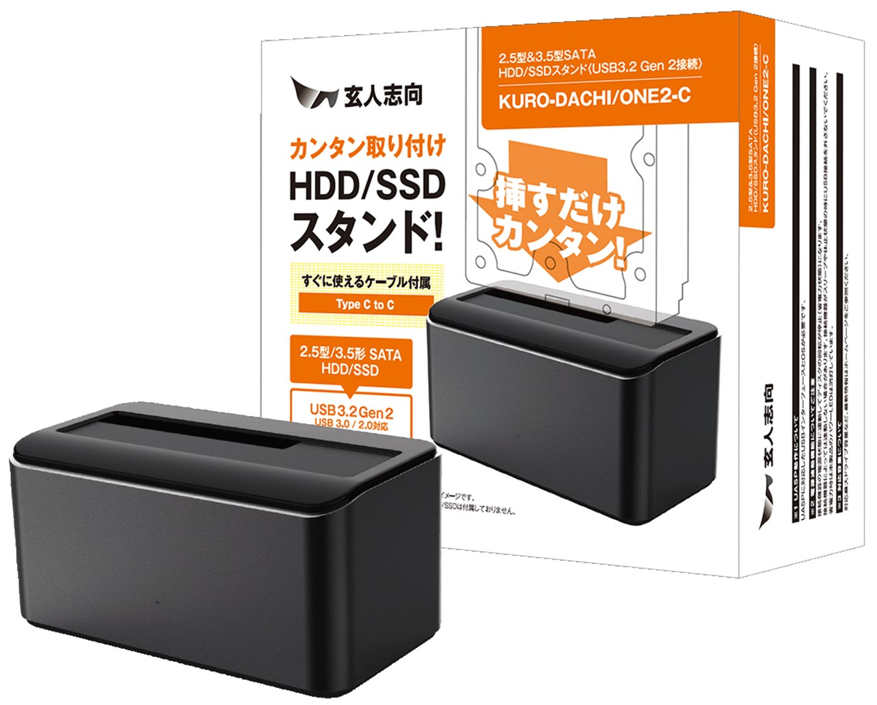 KURO-DACHI/ONE2-C スタンド型HDDケース(USB3.2G2/1ベイ)