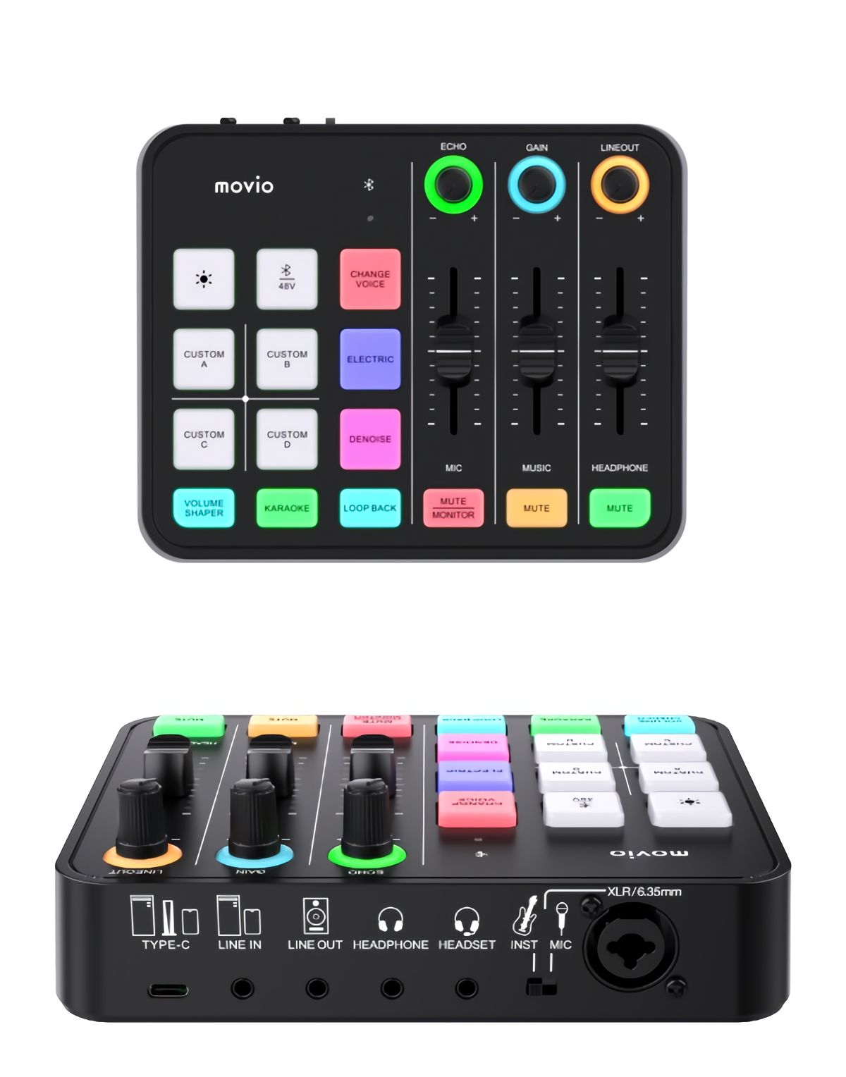 パッド部分にはボイスチェンジ、エレクトリック、デノイズ、カラオケ、ボリュームシェイパーなどの音声エフェクトに加え、ライティングパターン変更や48V給電、ループバック、録音した音声を呼び出すカスタムスイッチを搭載しライブ配信をサポートします。