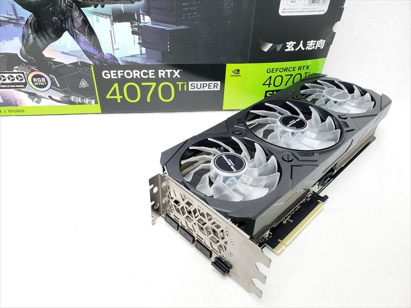 付属品あり、 中古保証3ヶ月(お客様都合による返品はお受けできません)、 PCI-Express4.0 x16、GeForce RTX 4070Ti SUPER、(Boost 2640 MHz CUDAコア8448)、16GB、(GDDR6X、21Gbps、256bit)、HDMI2.1a x1、DisplayPort1.4a x3、16-pin PCIe 12VHPWR x1 または 8pin x2