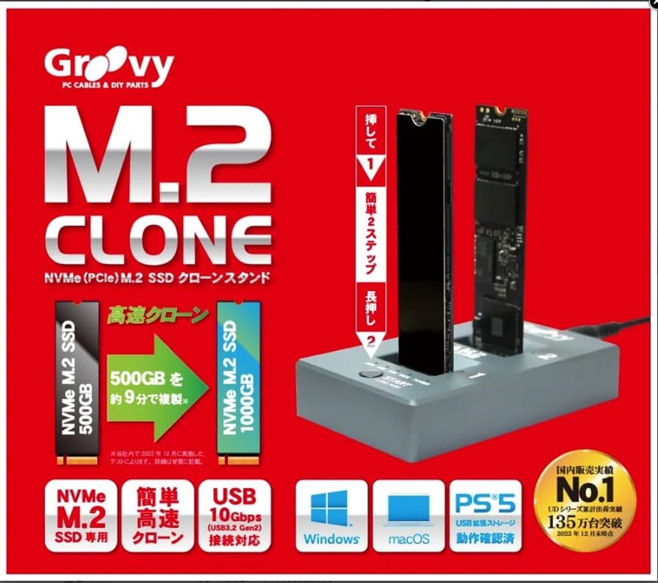 本モデルでは、NVMe接続M.2同士のクローンに加え、SATA接続M.2同士のクローンにも対応しています。