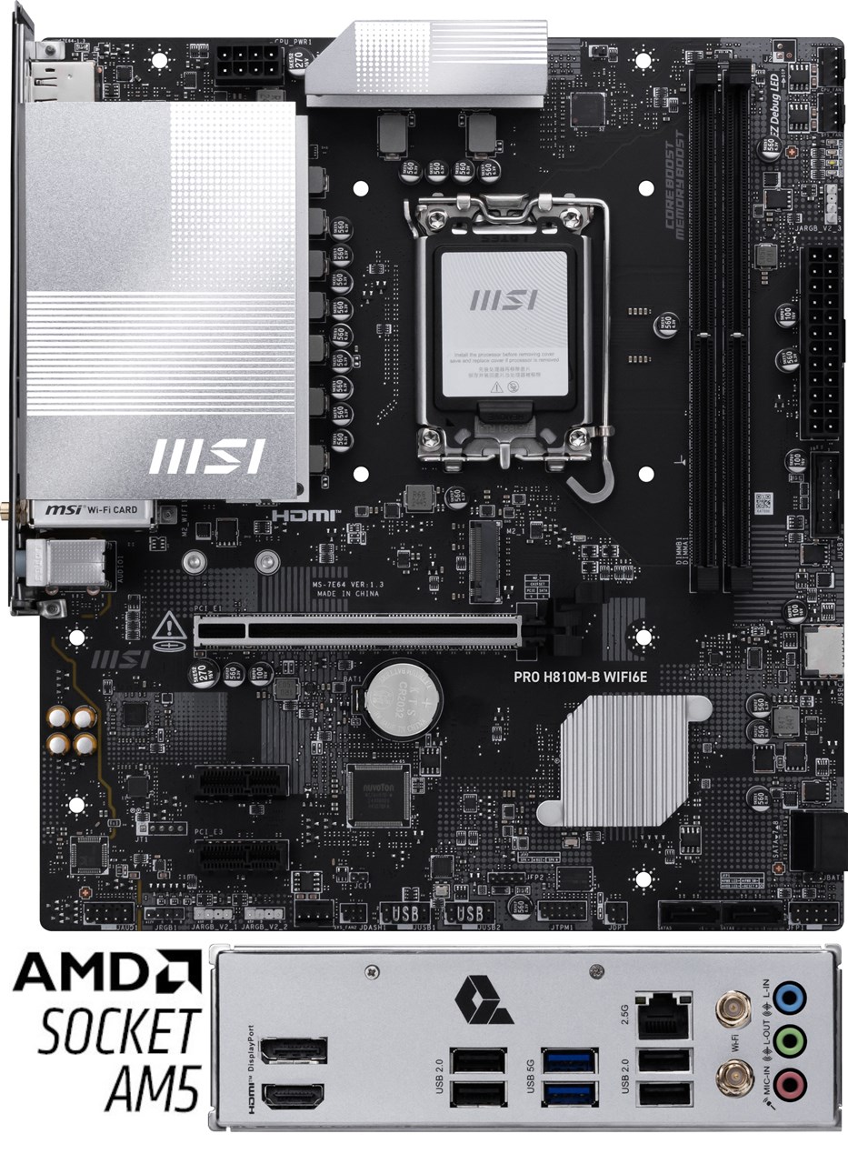 保証期間:3年間、 フォームファクタ:Micro ATX、対応ソケット:LGA1851、対応CPU:第15世代 Arrow Lake-S CPU、チップセット:Intel H810、メモリ:DDR5 2Slot Max.128GB Dual Channel 対応、グラフィック出力端子:HDMI(1) DP(1)、拡張スロット:PCIe x16 (1)、PCIe x1 (2)、ストレージ:SATA 6G(4)、M.2 (1)、ネットワーク:2.5G(1) (Realtek) 、Wi-Fi 6E 、 BT5.3、サウンド:7.1 CH HD Audio (Realtek ALC897 Audio Codec)、