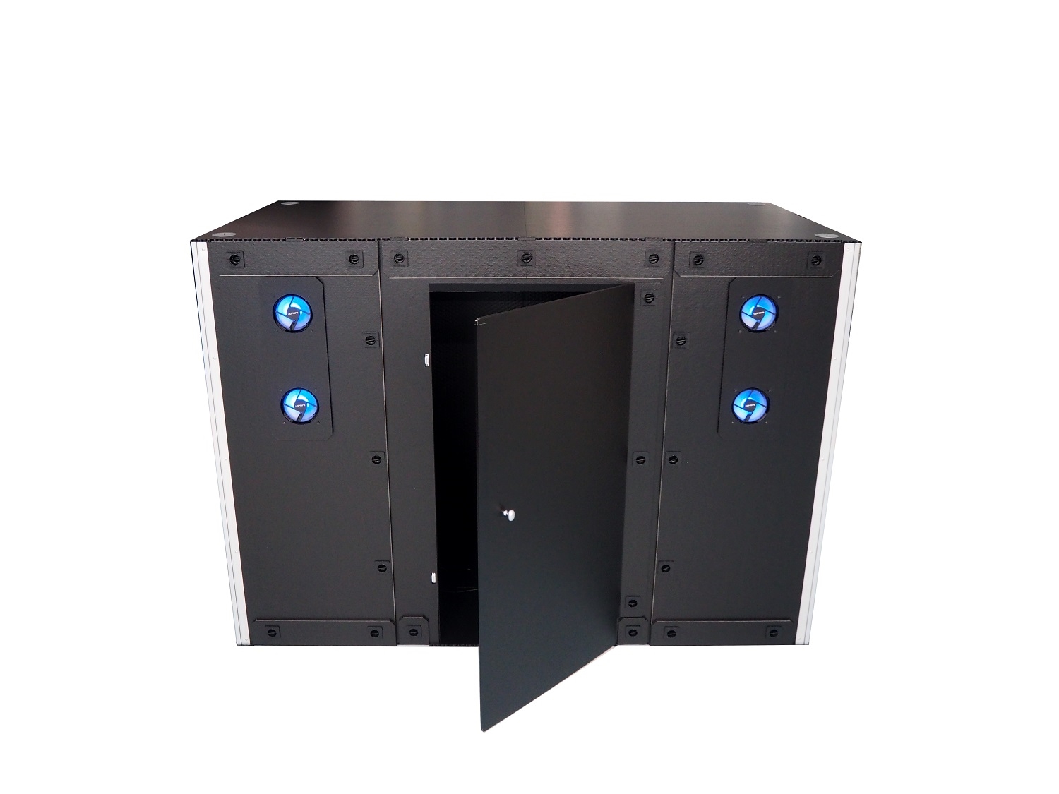 ケーブル配線孔×6、換気用120mmファン(別売)×4基取付可能