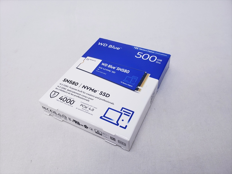 BOX品、 中古保証3ヶ月、 500GB、SSD、Read : 4000MB/s、Write : 3600MB/s、M.2 PCIe Gen4x4 NVMe、WD Blue SN580 NVMe