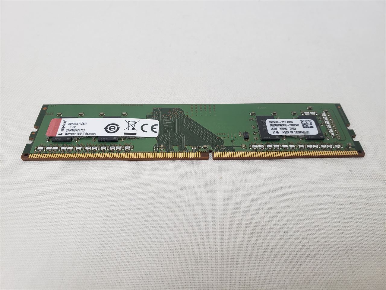 4GBx1、 中古保証3ヶ月、 288pin DDR4 SDRAM、PC4-19200、DDR4-2400、CL17、1.2V、デスクトップ用