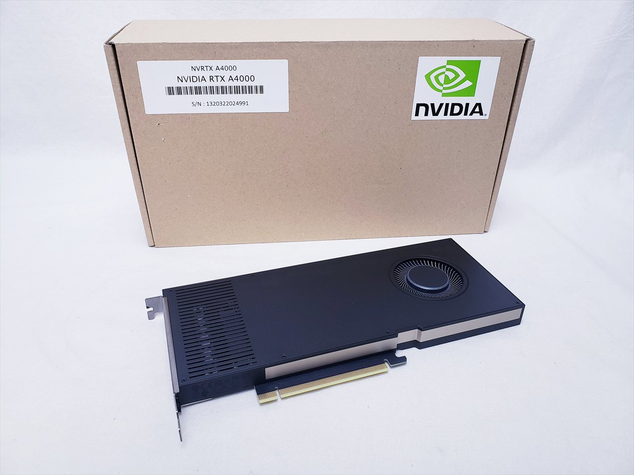 茶箱、本体・パッケージのみ、 中古保証3ヶ月、 PCI-Express x16、NVIDIA RTX A4000、(CUDAコア 6144 基 RT Core 48 基 Tensor Core 192 基)、16GB、(GDDR6、バス幅 256bit、バンド帯域幅 448GB/s)、DisplayPort1.4a x4、6pin x1