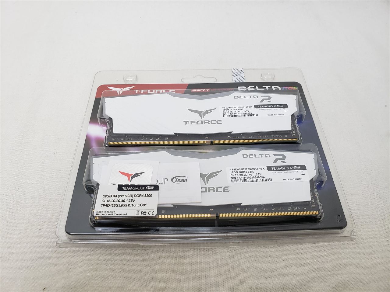 16GBx2、 中古保証3ヶ月、 288pin DDR4 SDRAM、PC4-25600、DDR4-3200、CL16-20-20-40、1.35V、White HS with RGB LED、Dual Channelに最適な2枚組みセット