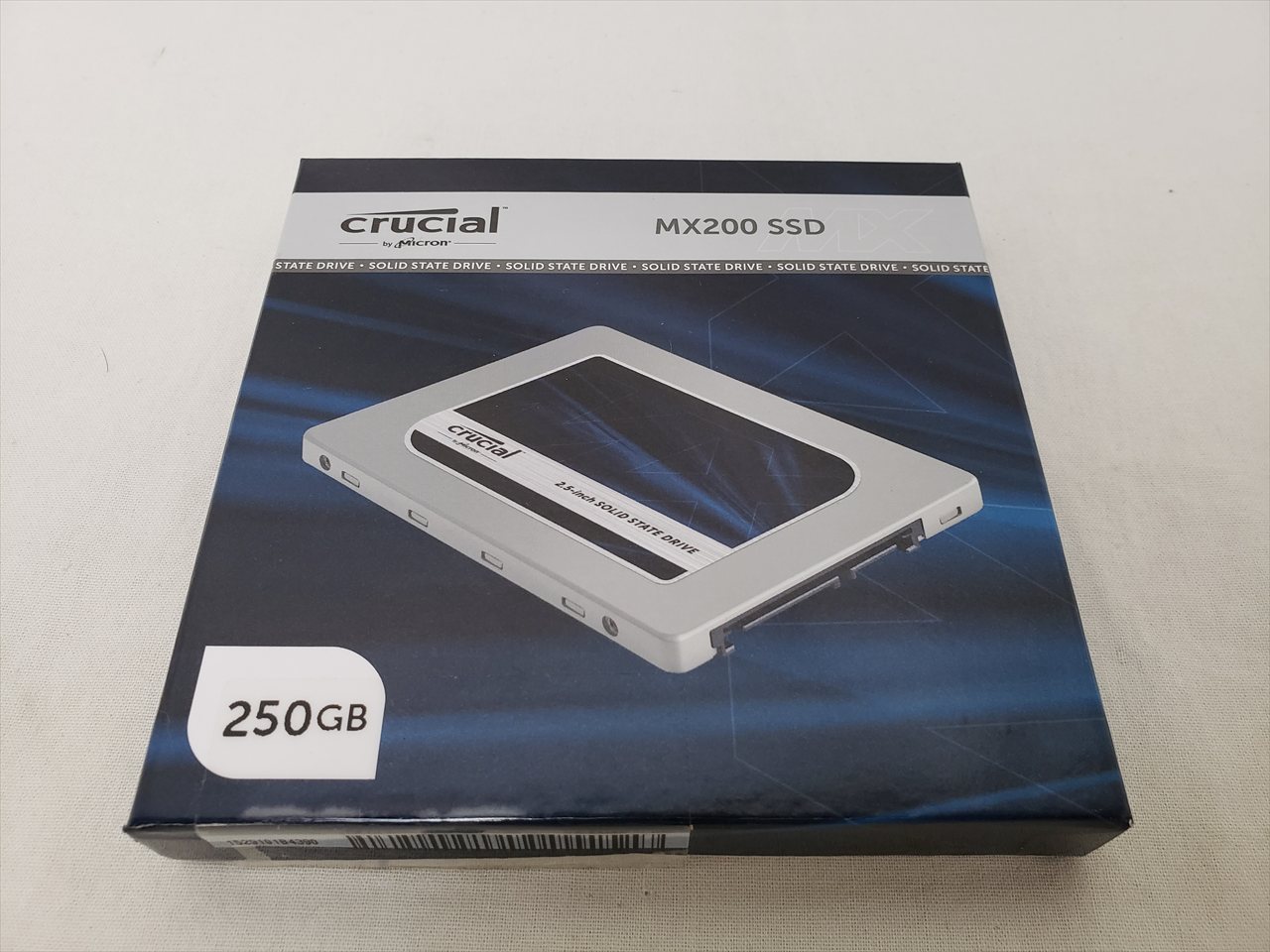 BOX品、 中古保証3ヶ月、 250GB、SSD、Read : 550MB/s、Write : 500MB/s、SATA 6G、Crucial MX200、2.5インチ、MLC、7mm