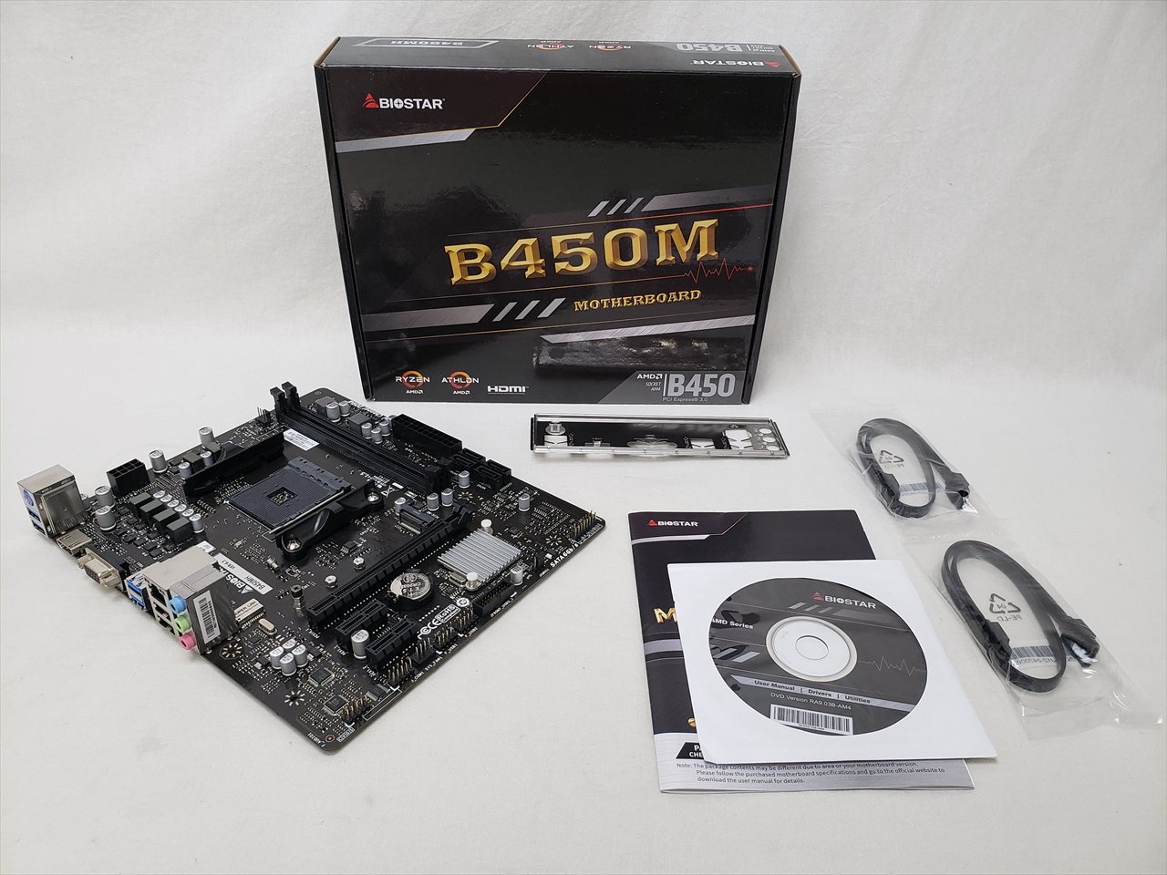 付属品あり、 中古保証3ヶ月、 Micro ATX、SocketAM4、対応CPU:3nd/2nd Generation Ryzen CPU 、2nd/1st Generation Ryzen with radeon Vega CPU、AMD B450、メモリ:Dual Channel DDR4 3200(OC)~1866 MHz 最大32GB 2Slot、グラフィック出力端子:HDMI(1) D-sub(1) *APU使用時のみ有効、拡張スロット:PCIex16 (1) PCIex1 (2)、ストレージ:SATA 6G(4) M.2(1)、Gigabit LAN(1)、7.1 CH HD Audio