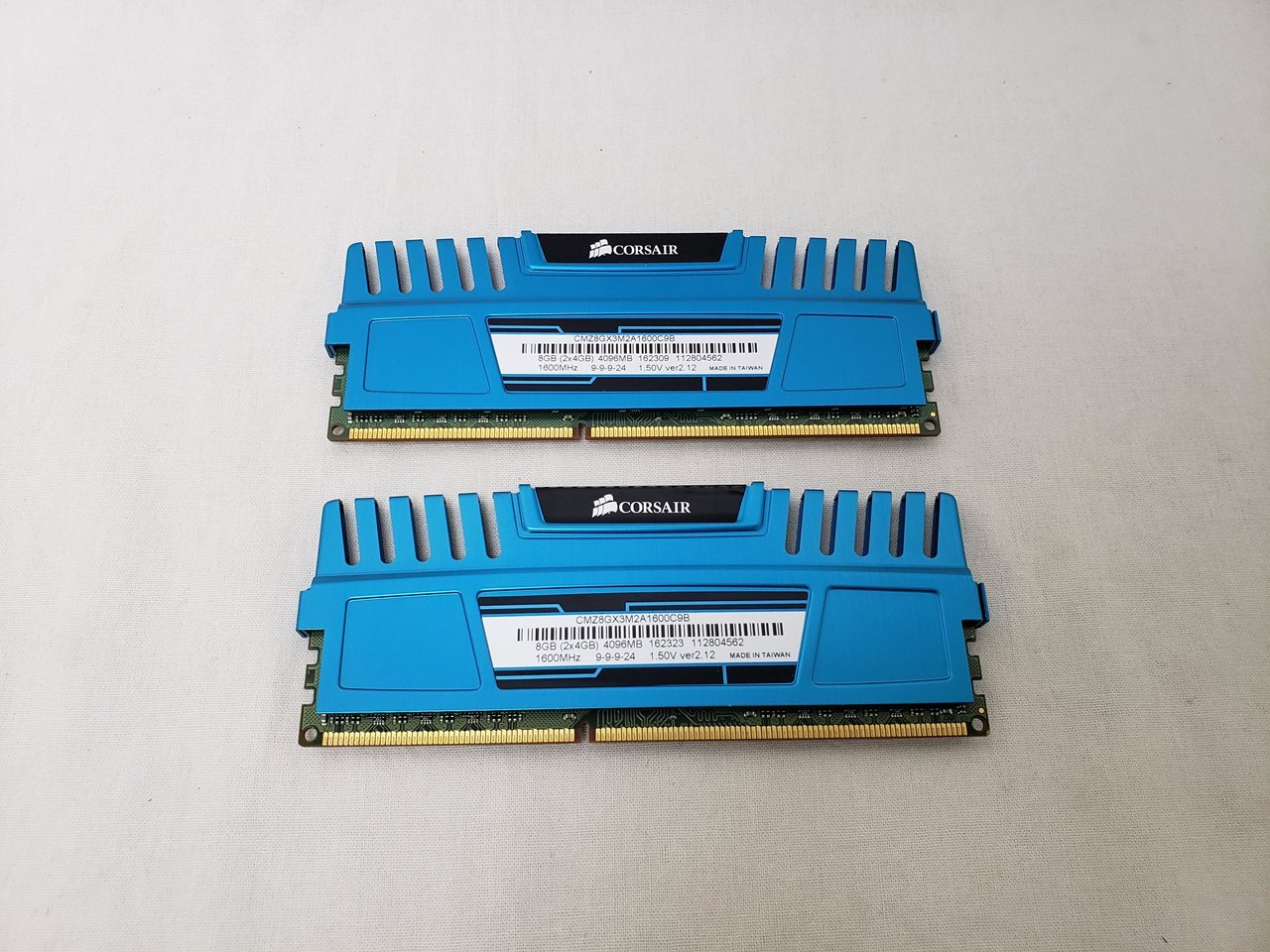 4GBx2、 中古保証3ヶ月、 240pin DDR3 SDRAM、PC3-12800、DDR3-1600、CL9-9-9-24 1.5V、ハイパフォーマンスメモリ「Vengence」シリーズ、Dual Channelに最適な2枚組みセット、デスクトップ用