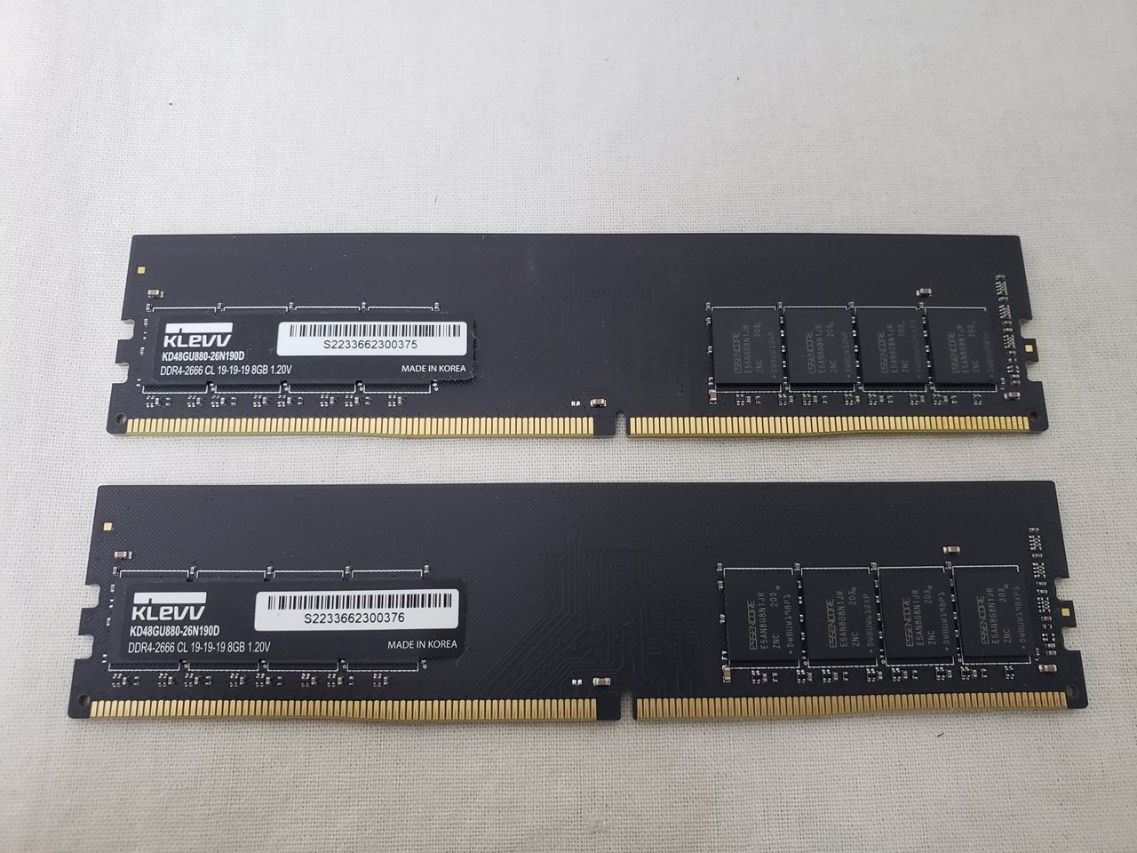 8GBx2、 中古保証3ヶ月、 288pin DDR4 SDRAM、PC4-21300、DDR4-2666、CL19-19-19、1.2v、Dual Channelに最適な2枚組みセット、デスクトップ用