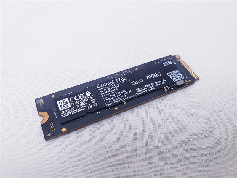 SSDのみ、 中古保証3ヶ月、 2TB、SSD、Read : 14500MB/s、Write : 12700MB/s、M.2 PCIe Gen5x4 NVMe、Crucial T705