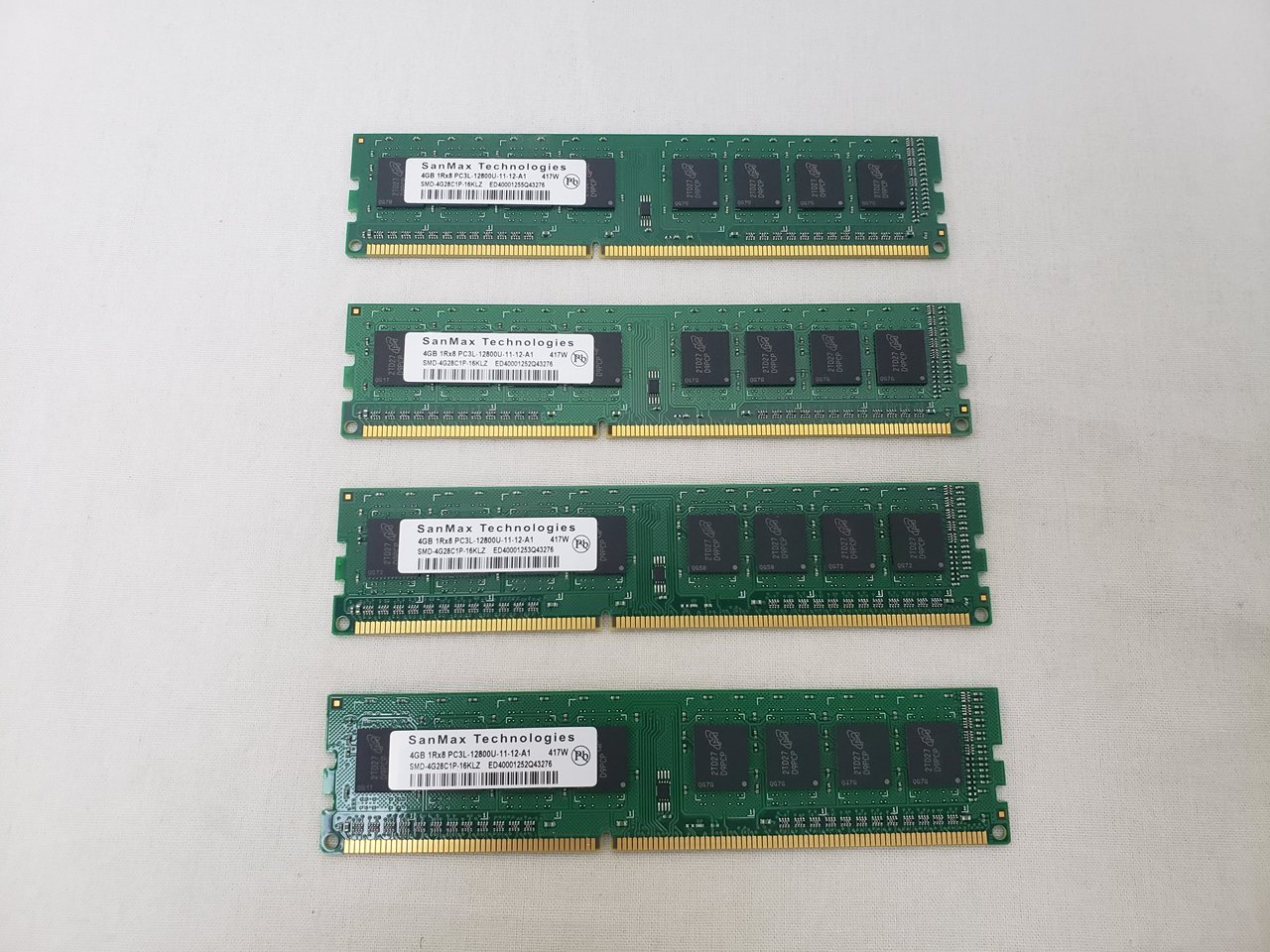4GBx1、 中古保証3ヶ月、 240pin DDR3 SDRAM、PC3L-12800、DDR3L-1600、CL11-11-11 1.35V、Micron 4GbDRAM採用、Dual Channelに最適な2枚組みセット、デスクトップ用