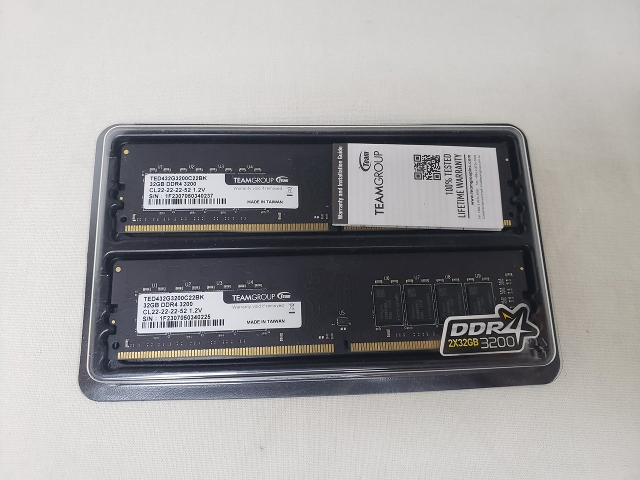 32GBx2、 中古保証3ヶ月、 288pin DDR4 SDRAM、PC4-25600、DDR4-3200、CL22-22-22-52、1.2V、Dual Channelに最適な2枚組みセット、デスクトップ用