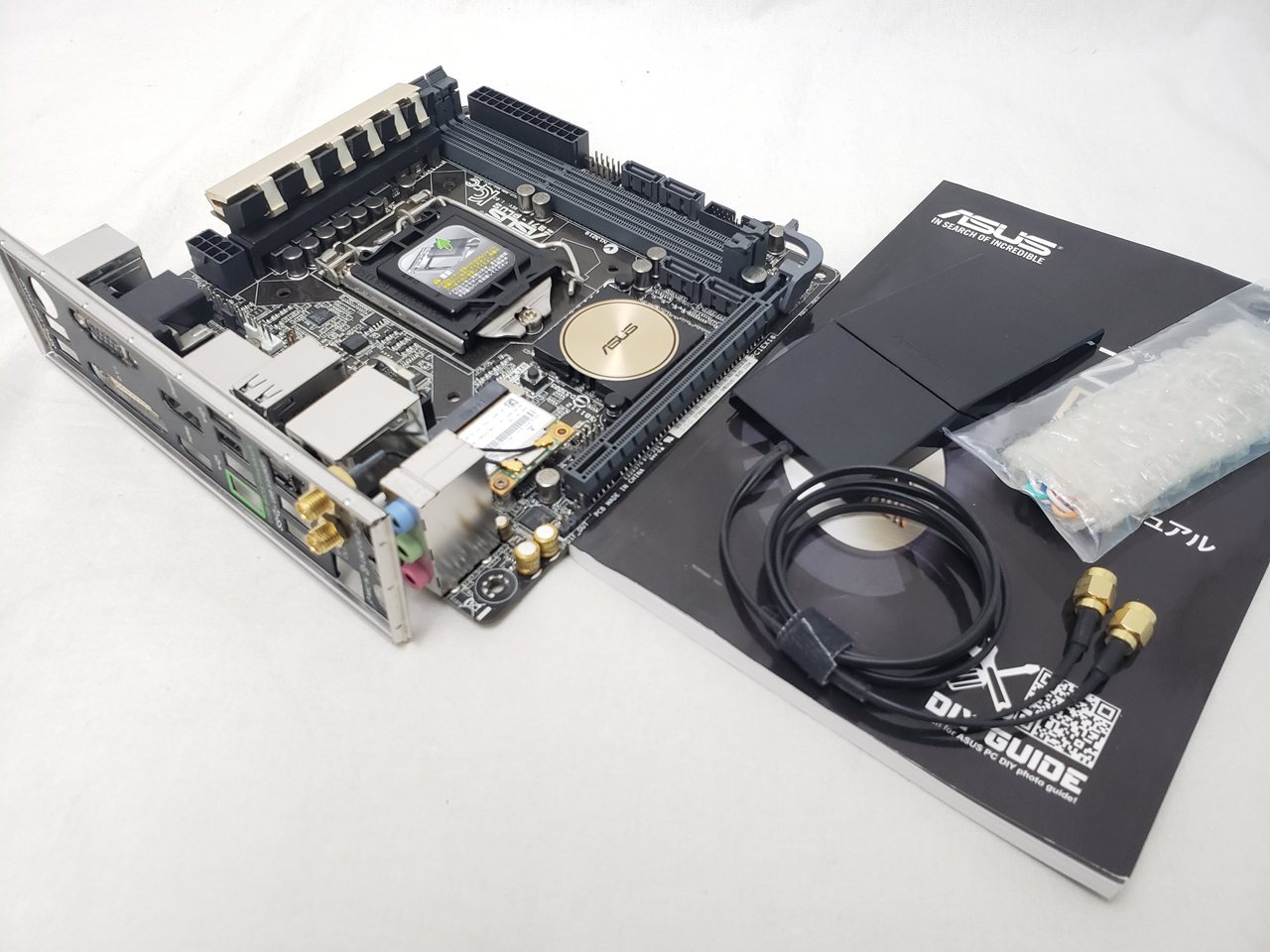 箱なし付属品:SATAケーブル欠品、 中古保証3ヶ月、 Mini-ITX、LGA1150、Haswell/Haswell Refresh CPU、Intel Z97、Dual Channel 対応 , 2 x 240-pin DIMM sockets support max. 16GB , DDR3 3200(O.C)/3100(O.C)/3000(O.C)/2933(O.C)/2800(O.C)/2666(O.C)/2600(O.C)/2500(O.C)/2400(O.C)/2200(O.C)/2133(O.C)/2000(O.C)/1866(O.C)/1800(O.C)/1600/1333 non-ECC unbuffered、HDMI(1) DP(1) DVI(1) D-sub(1)、-、PCI-E3.0 x16(1)、SATA 6G(4) M.2(1) RAIDサポート、Gigabit LAN(1) (Intel i218-V) Wi-Fi 802.11 a/b/g/n/ac 2.4/5GHzデュアルバンド、HD8ch (ALC892)、1xPS/2コンボ/1xDP/1xHDMI/1xDVI-D/1xD-Sub15/1xOptical S/PDIF out/1xLAN (RJ45)/4xUSB3.0/4xUSB2.0/8chオーディオI/O、1xUSB3.0ピンヘッダ(2ポート拡張)/1xUSB2.0ピンヘッダ(2ポート拡張)/1xMemOK!ボタン、マニュアル/サポートDVD/1xASUS 2T2R デュアルバンド Wi-Fiアンテナ/1x2-in-1 Wi-Fiアンテナコネクタ/4xSATA6Gケーブル/I/Oバックパネル(Q-Shield)/Q-コネクタ、電源フェーズ:Digital 6+2