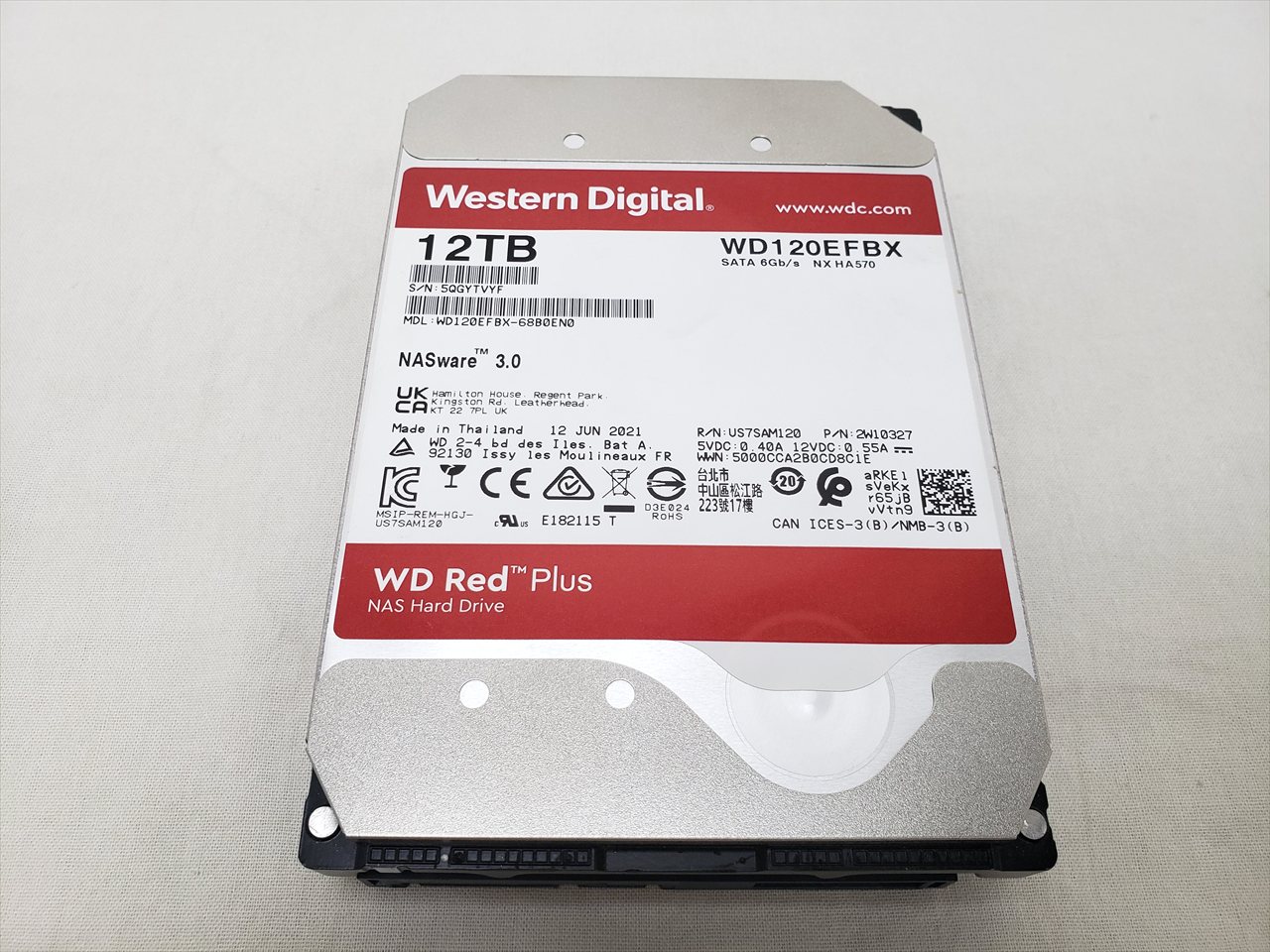 中古保証3ヶ月、 12TB、HDD、7200rpm、256MB、SATA 6G、WD Red Plus、※ホームネットワーク・スモールオフィスネットワークNAS向けHDD