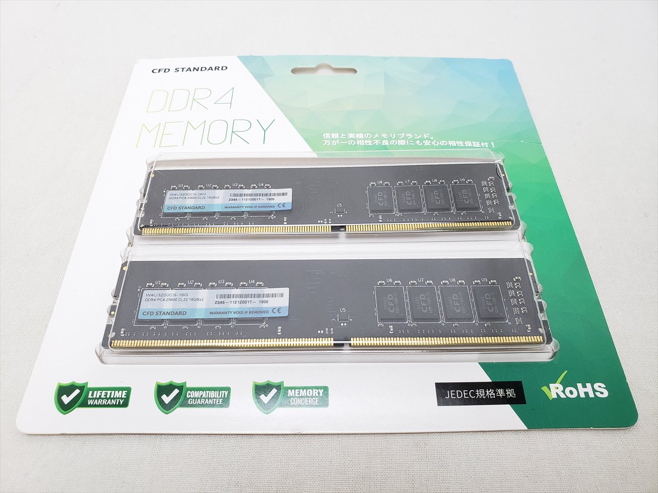 16GBx2、 中古保証3ヶ月、 288pin DDR4 SDRAM、PC4-25600、DDR4-3200、CL 22-22-22、1.2V、Dual Channelに最適な2枚組みセット
