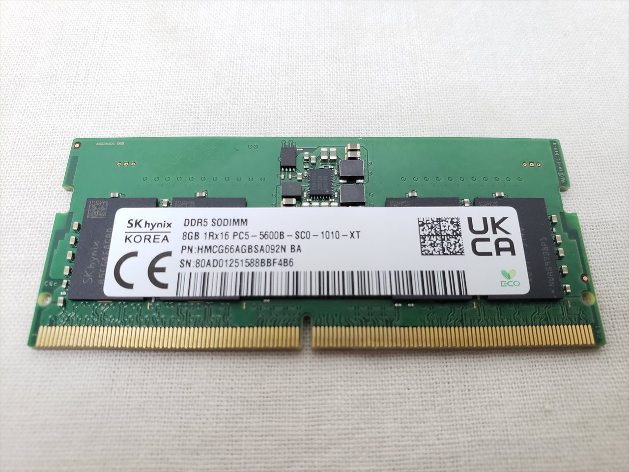 8GBx1、 中古保証3ヶ月、 262pin DDR5 SO-DIMM、PC5-44800、DDR5-5600、ノート用