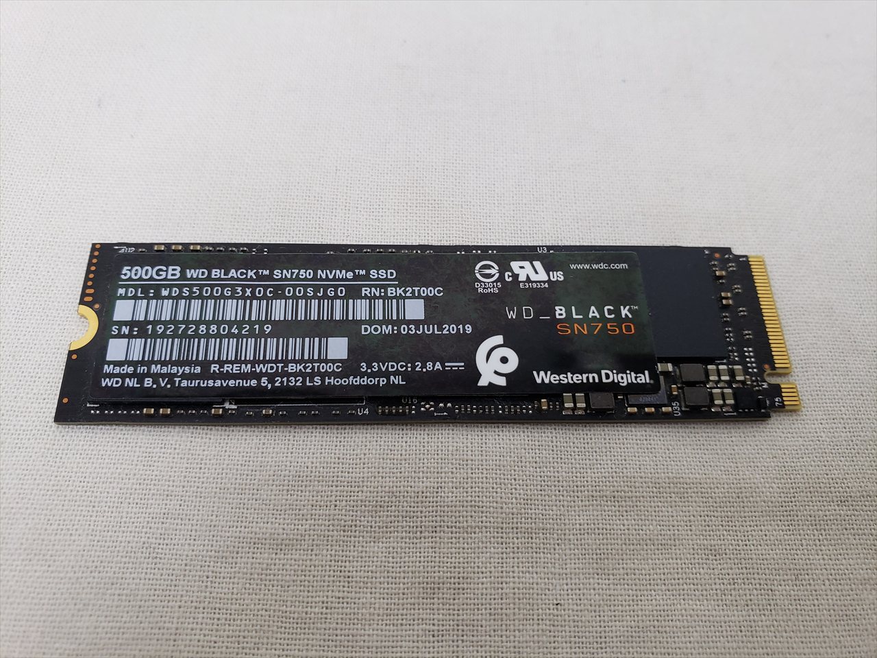 SSDのみ、 中古保証3ヶ月、 500GB、SSD、Read : 3430MB/s、Write : 2600MB/s、M.2 PCIe Gen3 x4 NVMe、WD Black SN750