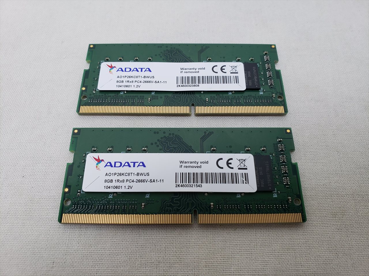 8GBx2、 中古保証3ヶ月、 260pin DDR4 SO-DIMM、PC4-21300、DDR4-2666、ノート用