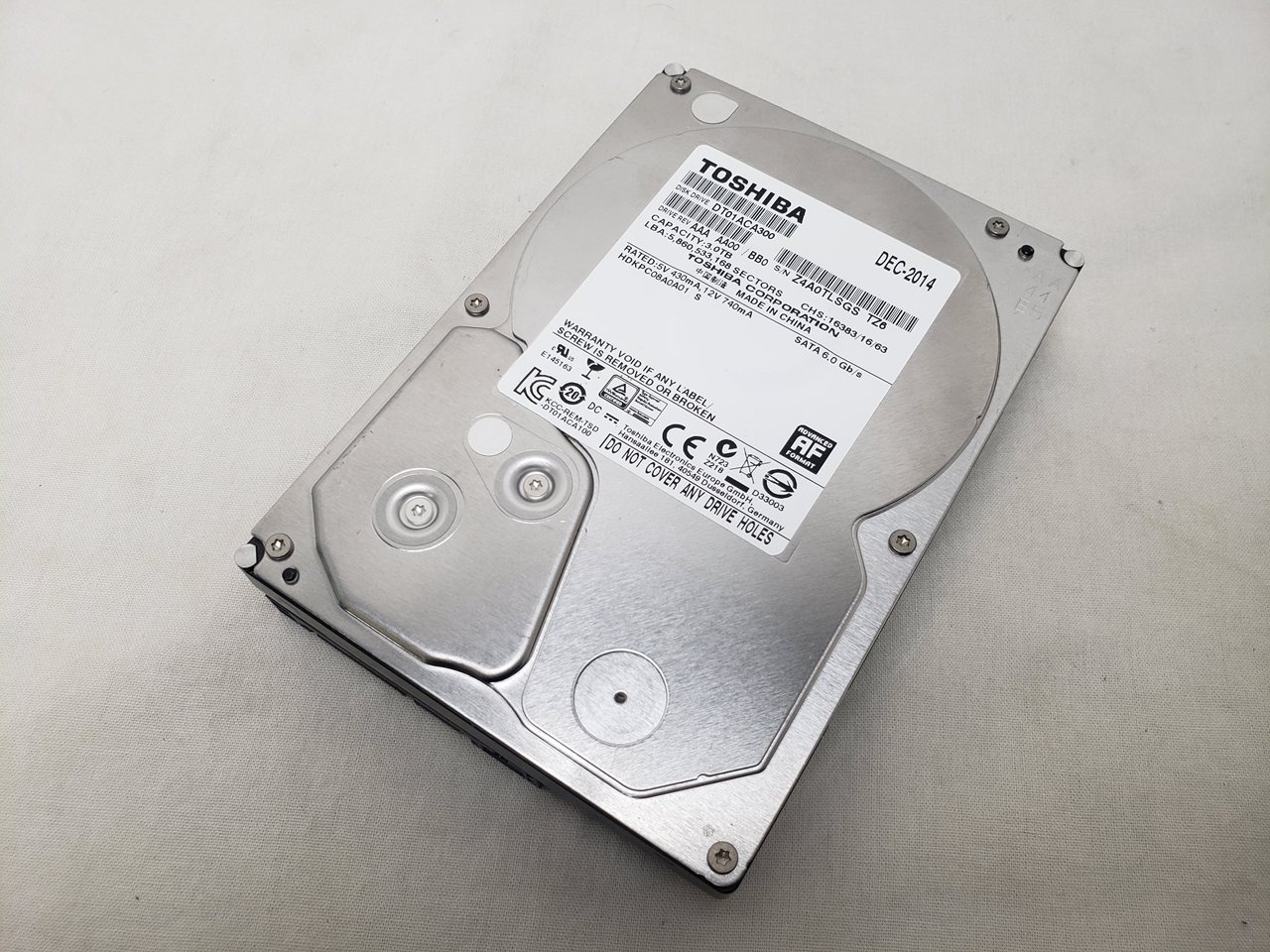 中古保証3ヶ月、 3TB、7200rpm、64MB、SATA 6G、※4K セクタ