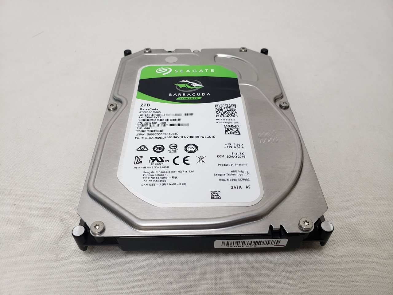 中古保証3ヶ月、 2TB、HDD、256MB、SATA 6G、Barracuda