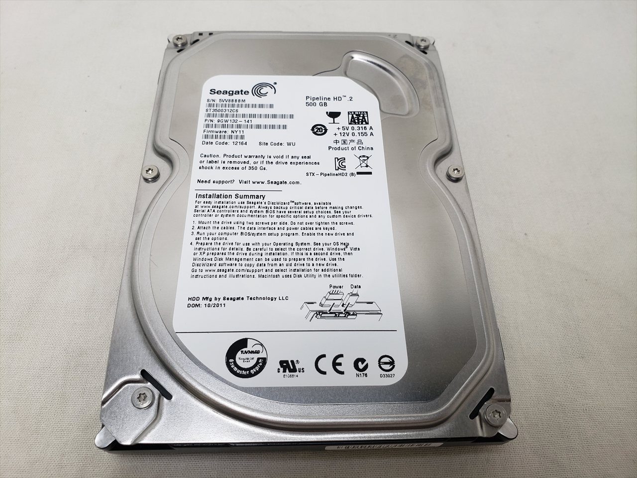 中古保証3ヶ月、 500GB、5900rpm、8MB、SATA300