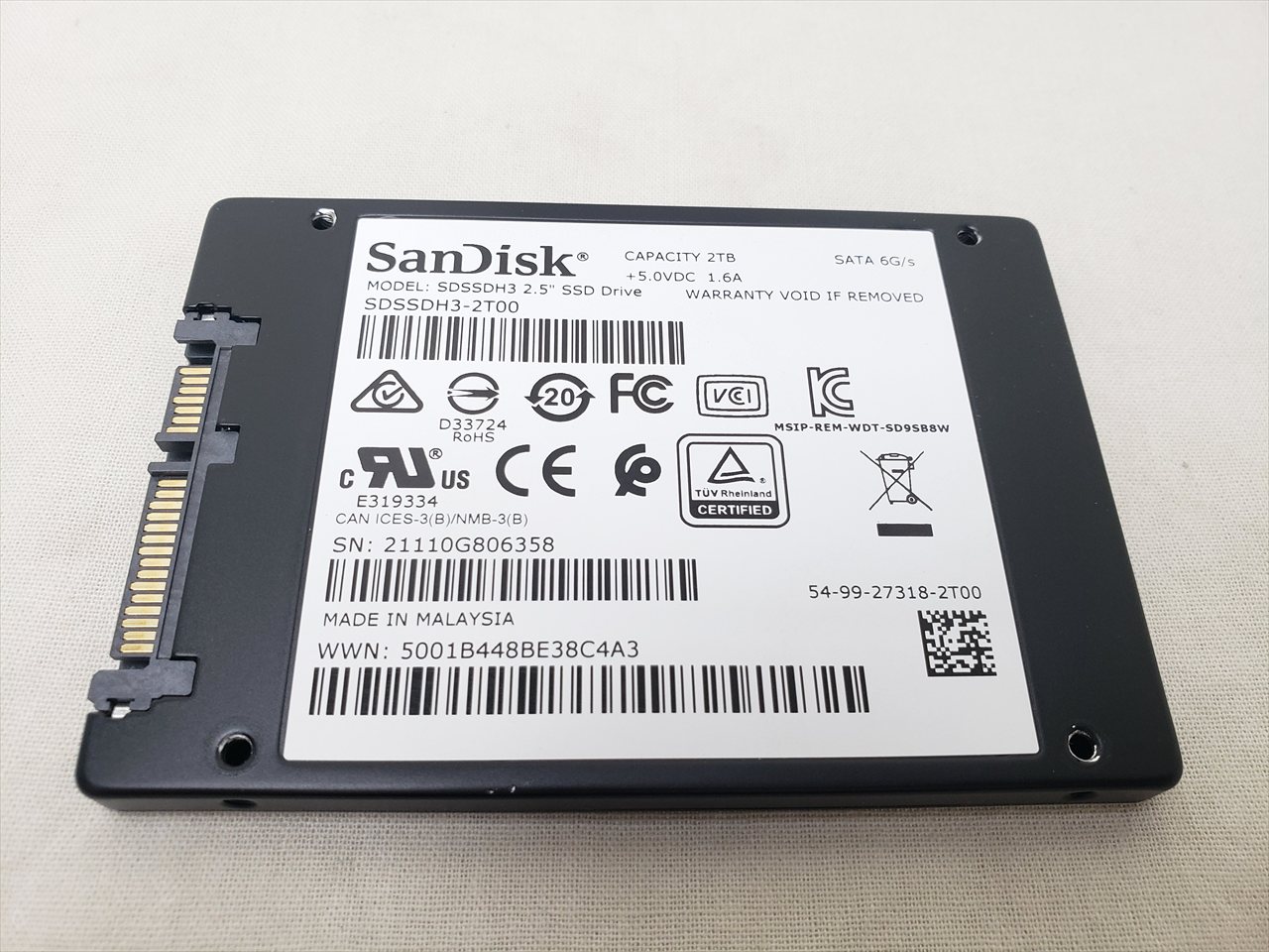 SSDのみ、 中古保証3ヶ月、 2TB、SSD、Read : 560MB/s、Write : 530MB/s、SATA 6G、Ultra 3D SSD、2.5インチ、7mm