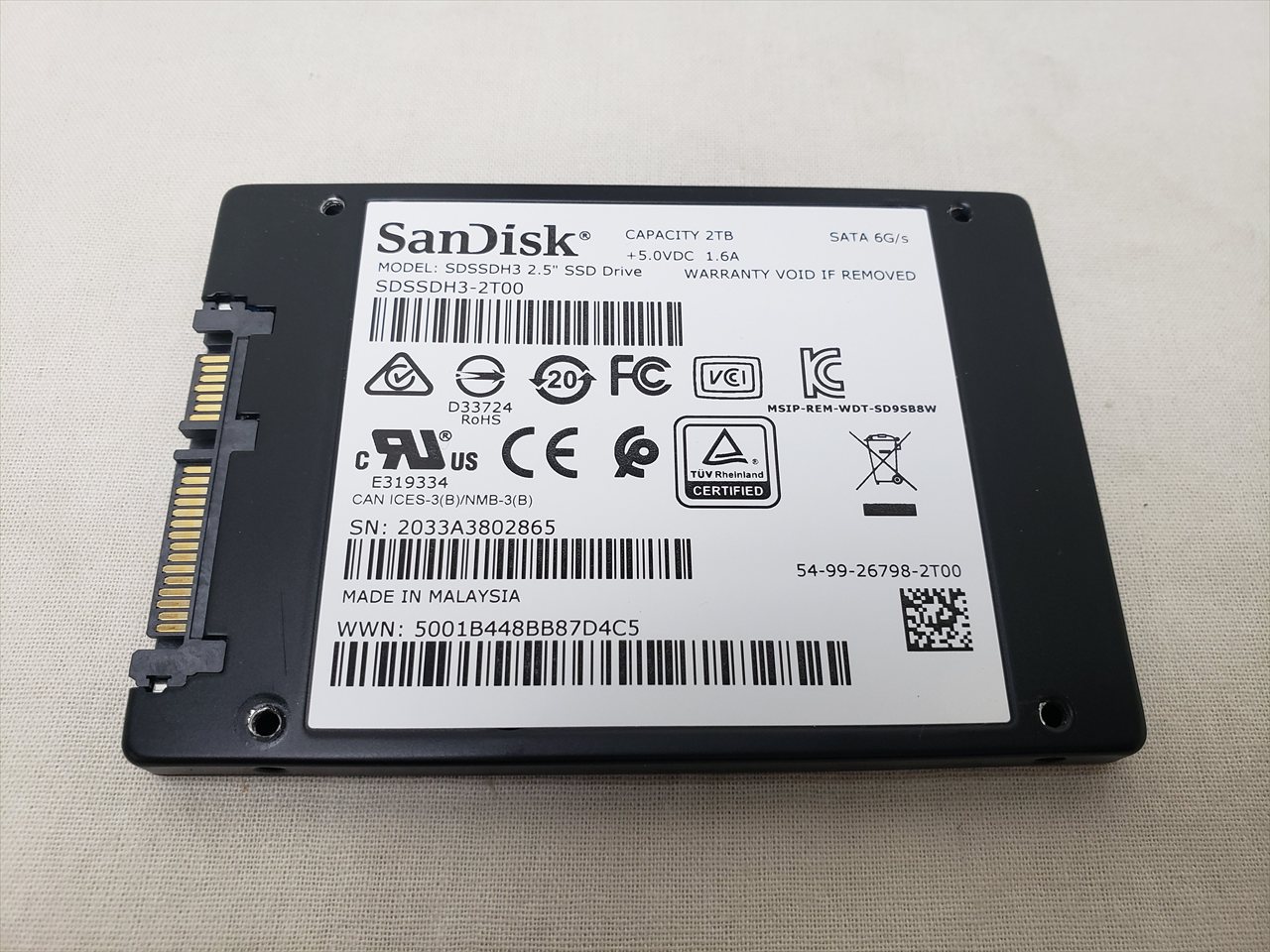 SSDのみ、 中古保証3ヶ月、 2TB、SSD、Read : 560MB/s、Write : 530MB/s、SATA 6G、Ultra 3D SSD、2.5インチ、7mm