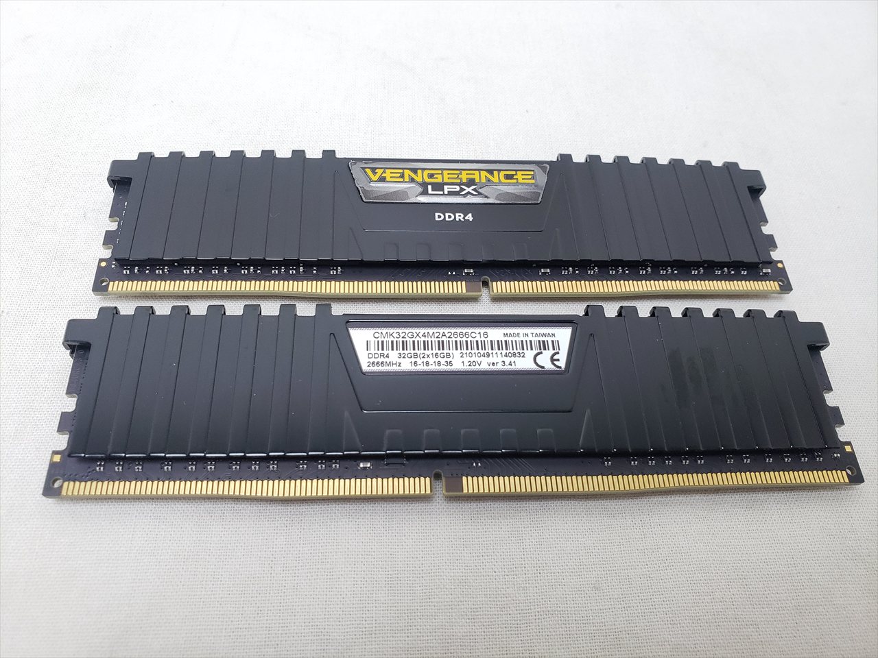 16GBx2、 中古保証3ヶ月、 288pin DDR4 SDRAM、PC4-21300、DDR4-2666、CL16-18-18-35、1.2V、XMP2.0、ロープロファイル、Dual Channelに最適な2枚組みセット、デスクトップ用