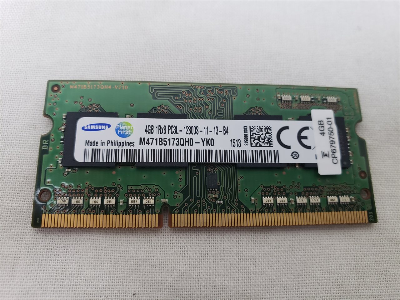 4GBx1、 中古保証3ヶ月、 204Pin DDR3L SO-DIMM、PC3L-12800、DDR3L-1600、1.35Vの低電圧動作に対応した省エネメモリ、ノート用