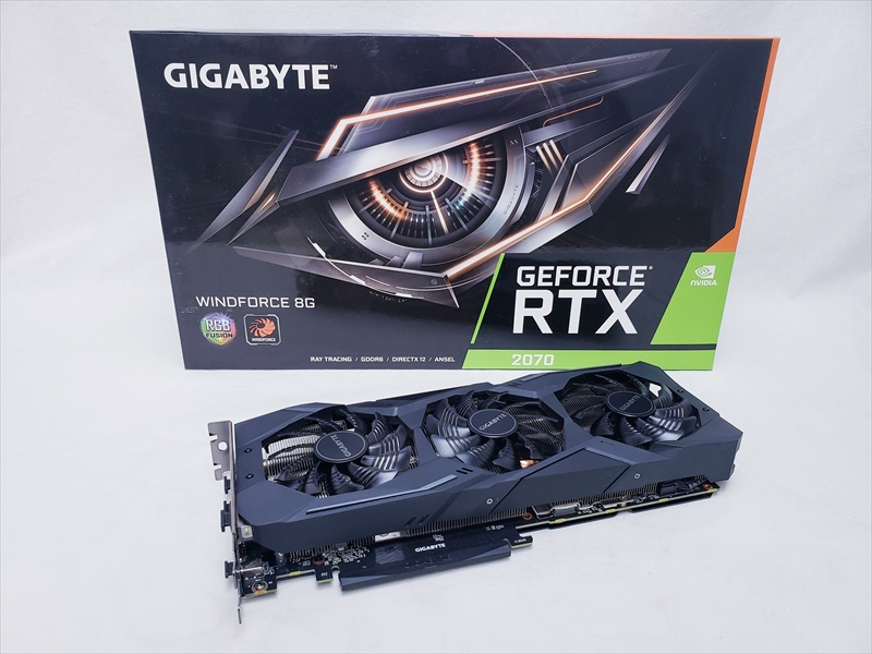 付属品あり、 中古保証3ヶ月、 PCI-Express x16、GeForce RTX 2070、(Base 1410MHz Boost 1620 MHz mode CUDAコア2304)、8GB、(GDDR6、14Gbps、256bit)、USB Type-C x1、HDMI2.0b x1、DisplayPort1.4 x3、HDCP対応、8pin x1 + 6pin x1