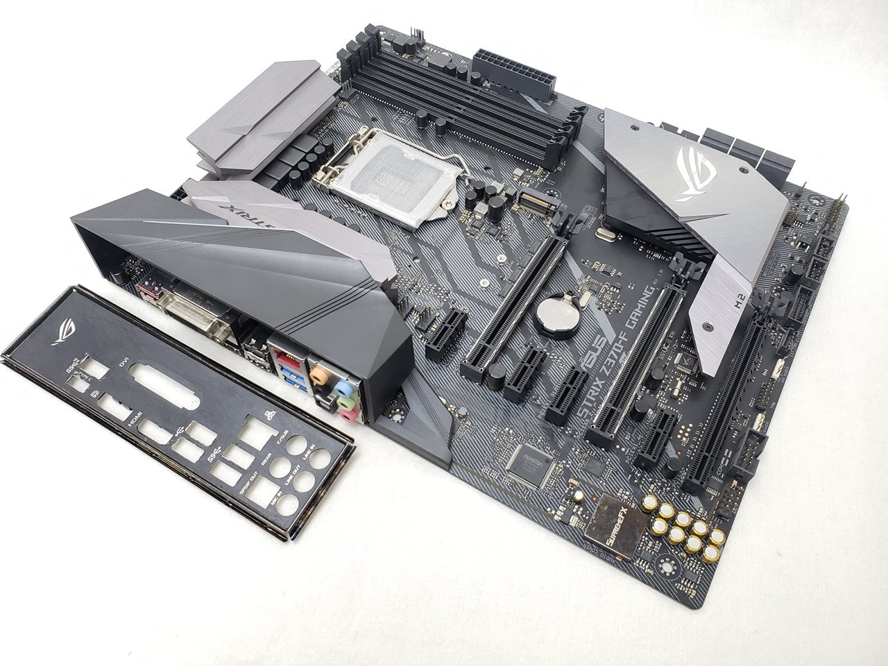 本体とIOシールドのみ、※よごれあり、 中古保証3ヶ月、 ATX、LGA1151、Intel Z370、DDR4 4000(O.C)~2666/2400/2133 MHz 4Slot Max.64GB Dual Channel 対応、グラフィック出力端子:HDMI1.4b(1) DP1.2(1) DVI-D(1)、マルチGPU機能:SLI/CrossFireX サポート、拡張スロット:PCI-E3.0 x16(3) PCI-E3.0 x1(4)、ストレージ:SATA 6G(6) M.2(2) RAIDサポート、ネットワーク:Gigabit LAN(1) (Intel I219V)、サウンド:ROG SupremeFX 8-Channel High Definition Audio CODEC S1220A
