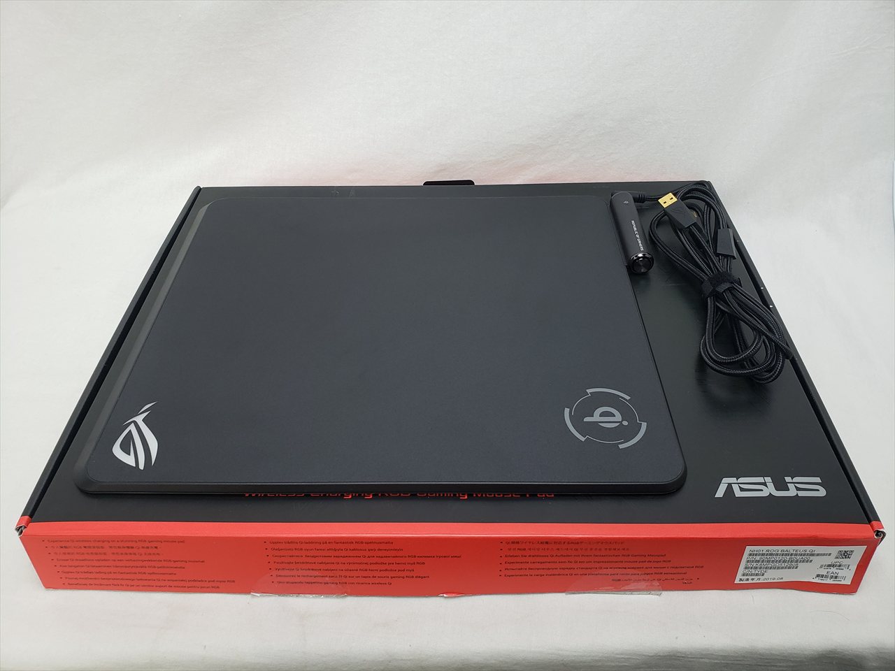 付属品あり、 中古保証3ヶ月、 15ゾーンAura Syncライティング、縦長ハードサーフェース、USBパススルーおよび滑り止めベースを備えたROG Balteus Qiワイヤレス充電RGBゲーミングマウスパッド