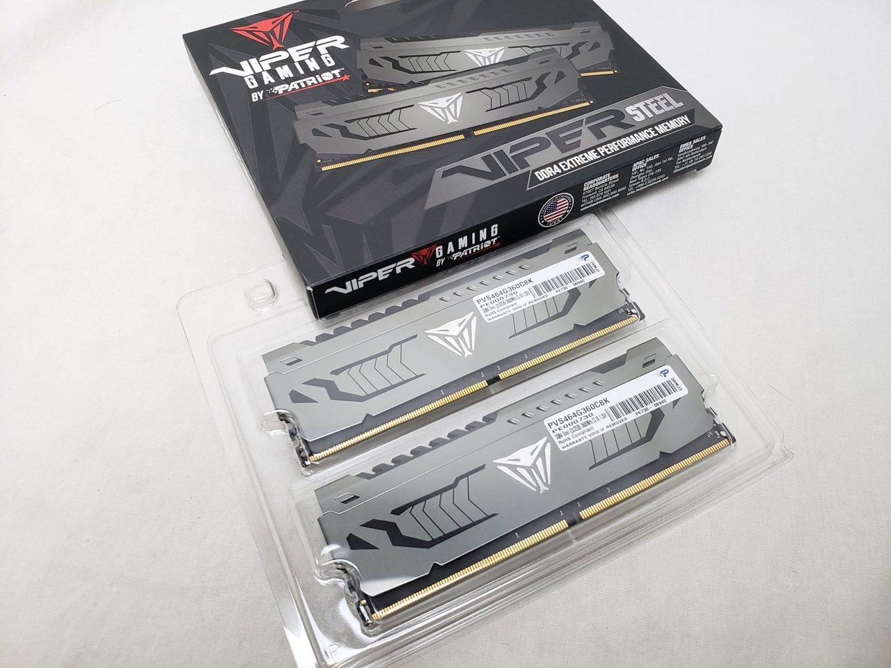 32GBx2、 中古保証3ヶ月、 288pin DDR4 SDRAM、PC4-28800、DDR4-3600、CL18-22-22-42、1.35V、Viper Steelシリーズ、Dual Channelに最適な2枚組みセット、デスクトップ用