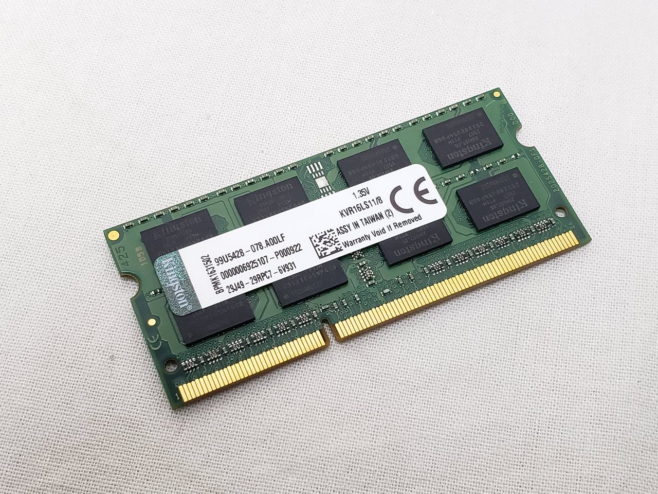 8GBx1、 中古保証3ヶ月、 204Pin DDR3L SO-DIMM、PC3L-12800、DDR3L-1600、1.35Vの低電圧動作に対応した省エネメモリ