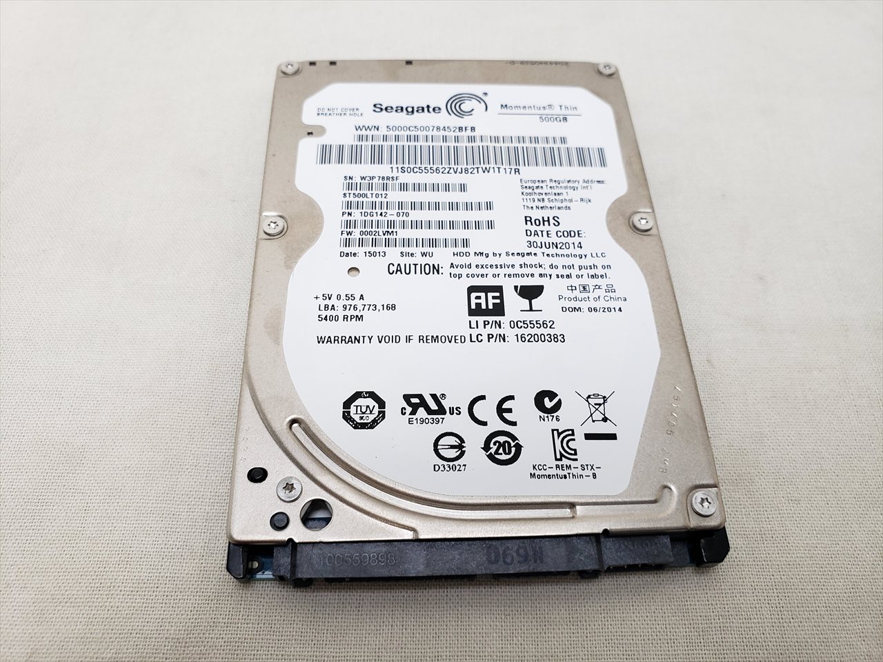 中古保証3ヶ月、 500GB、5400rpm、16MB、SATA 3G、Momentus Thin、2.5インチ、厚み7mm、※4K セクタ