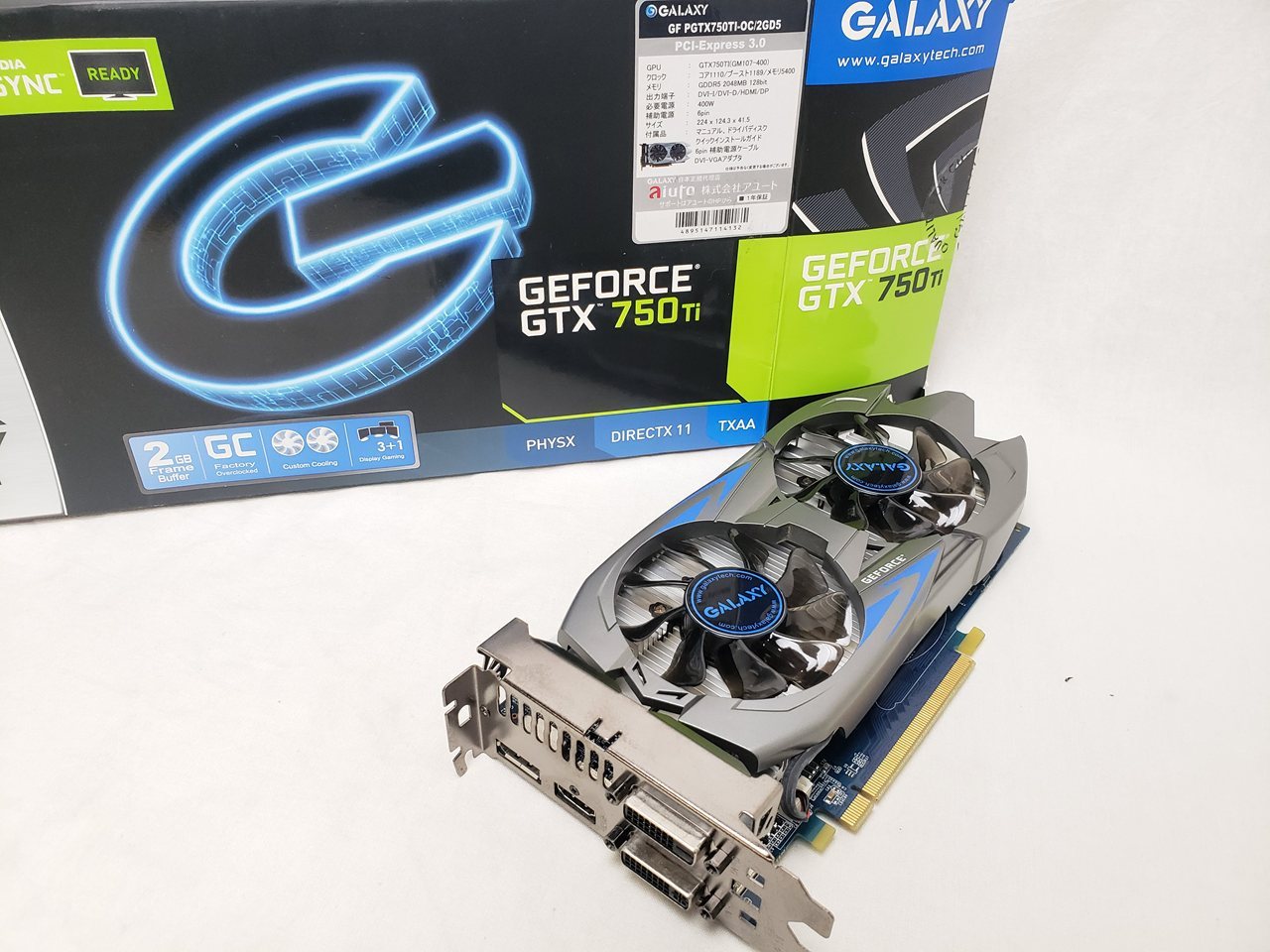 付属品あり、 中古保証3ヶ月、 PCI-Express x16、GeForce GTX 750 Ti、(Base 1110MHz Boost 1189MHz)(OC)、2GB、(GDDR5、5400MHz、128bit)、DVI-I、DVI-D、HDMI、DisplayPort、HDCP対応、オーバークロック、6pin×1