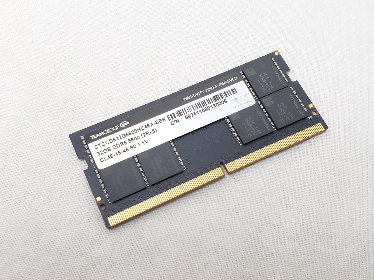 32GBx1、 中古保証3ヶ月、 262pin DDR5 SO-DIMM、PC5-44800、DDR5-5600、CL46、1.1V、T-Create Classic DDR5、ノート用