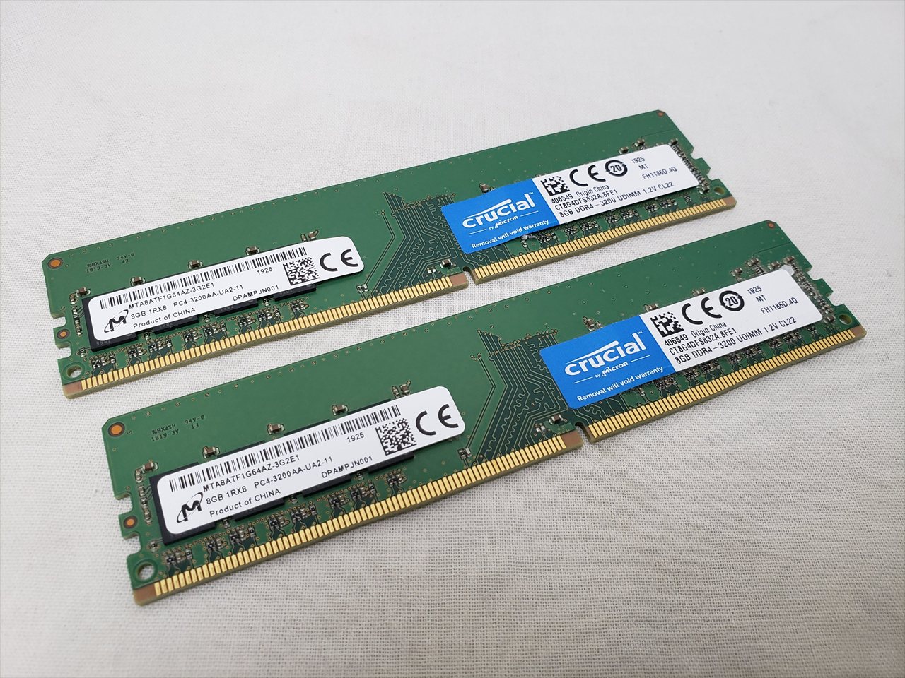 8GBx2、 中古保証3ヶ月、 288pin DDR4 SDRAM、PC4-25600、DDR4-3200、CL22、Dual Channelに最適な2枚組みセット、デスクトップ用