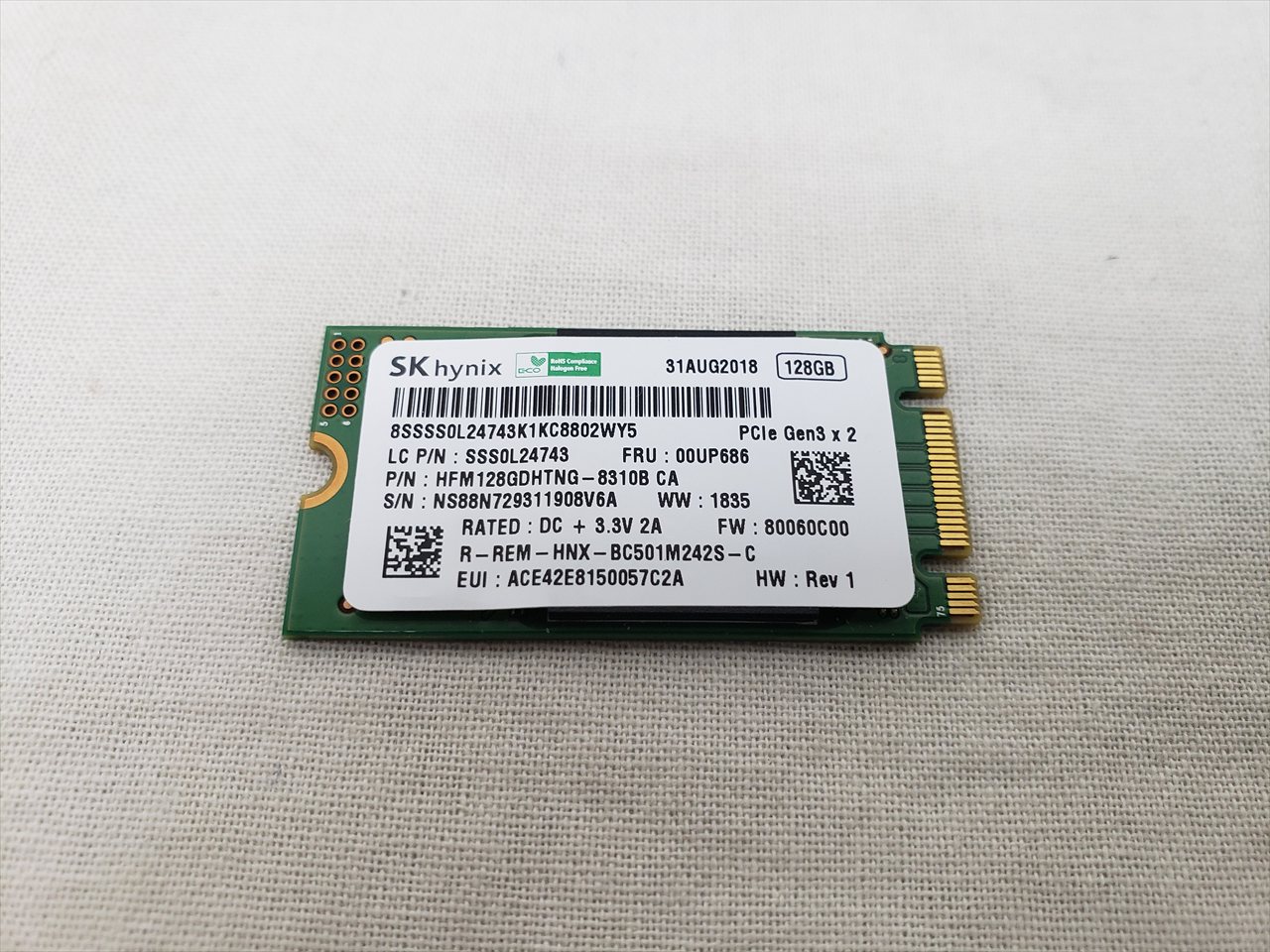 SSDのみ、 中古保証3ヶ月、 128GB、SSD、M.2 2242、PCIe Gen3x2 NVMe