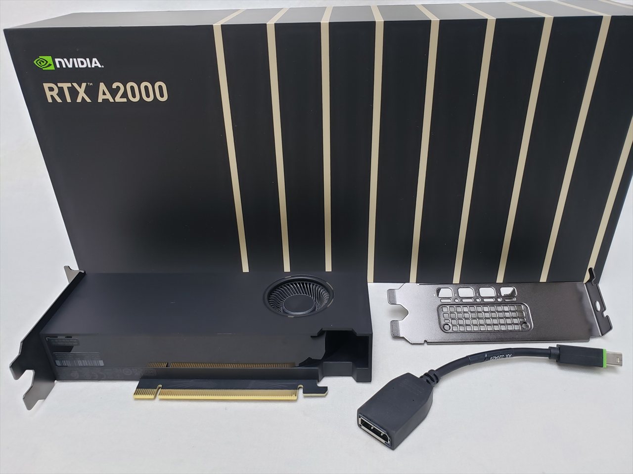 付属品あり、 中古保証3ヶ月、 PCI-Express x16、NVIDIA RTX A2000、(CUDAコア 3328 基 RT Core 26 基 Tensor Core 104 基)、6GB、(GDDR6、バス幅 192bit、バンド帯域幅 288GB/s)、Mini DisplayPort × 4(DisplayPort ver 1.4a対応)