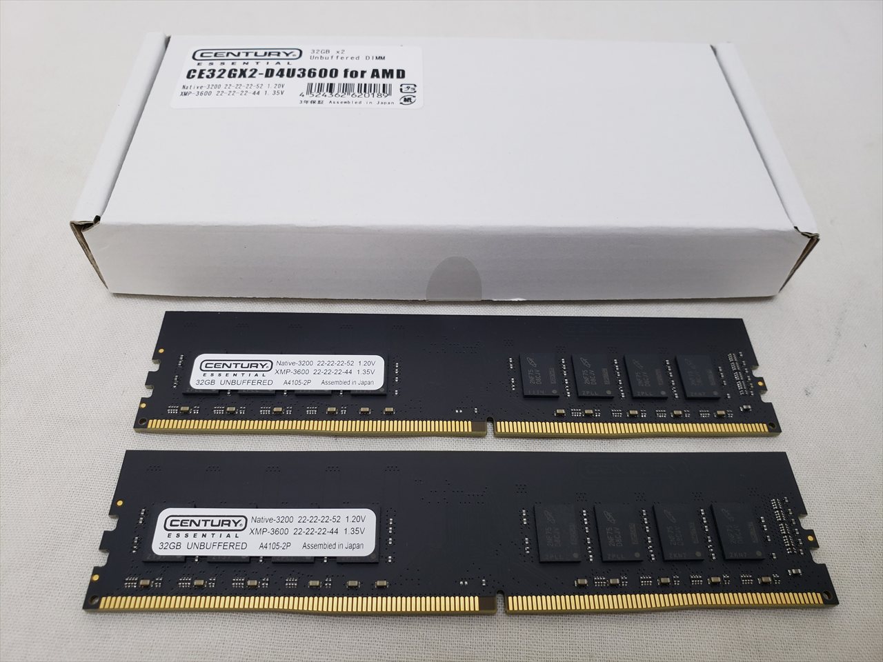 32GBx2、 中古保証3ヶ月、 288pin DDR4 SDRAM、PC4-28800、DDR4-3600、CL22-22-22-44、1.35V、Dual Channelに最適な2枚組みセット、デスクトップ用