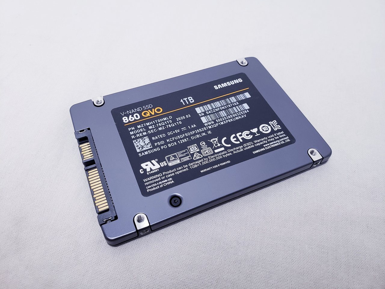 SSDのみ、 中古保証3ヶ月、 1TB、SSD、Read : 550MB/s、Write : 520MB/s、SATA 6G、860 QVO、2.5インチ、7mm、QLC 3D NAND (4bit MLC V-NAND)